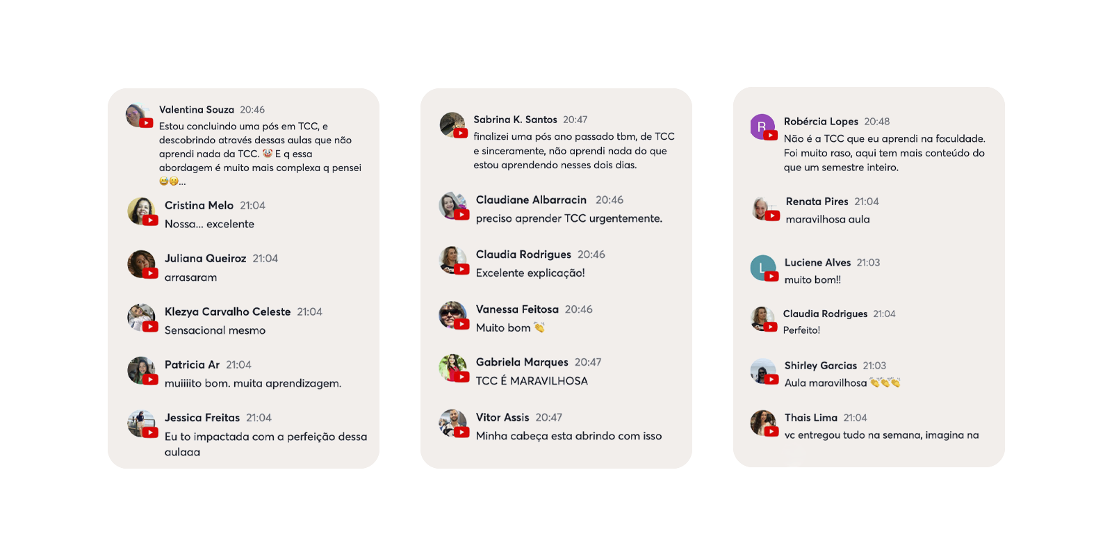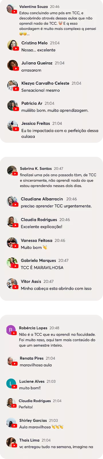 Ao longo das aulas, você vai aprender os fundamentos invisíveis que tornam a TCC realmente aplicável na prática. Sem enrolação, sem linguagem rebuscada, direto ao ponto — pra você finalmente sentir confiança na hora de atender.
